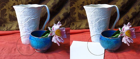 Photographs Showing Orange Bounce Light on Left Pitcher