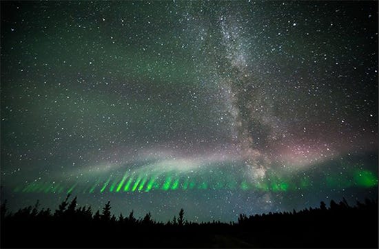 We visual artists are deeply interested in light in all its various forms and manifestations. One fall, Ann and I had the opportunity to view the Aurora Borealis while we were on a trip to Minnesota. Soft green clouds and curtains of light raced across the northern sky toward us and over our heads before disappearing. They pulsed rapidly, much like the waves on the lake where we were staying. It was fascinating and lucky for us that our mobile phone cameras could capture even more of it than the eye can see.