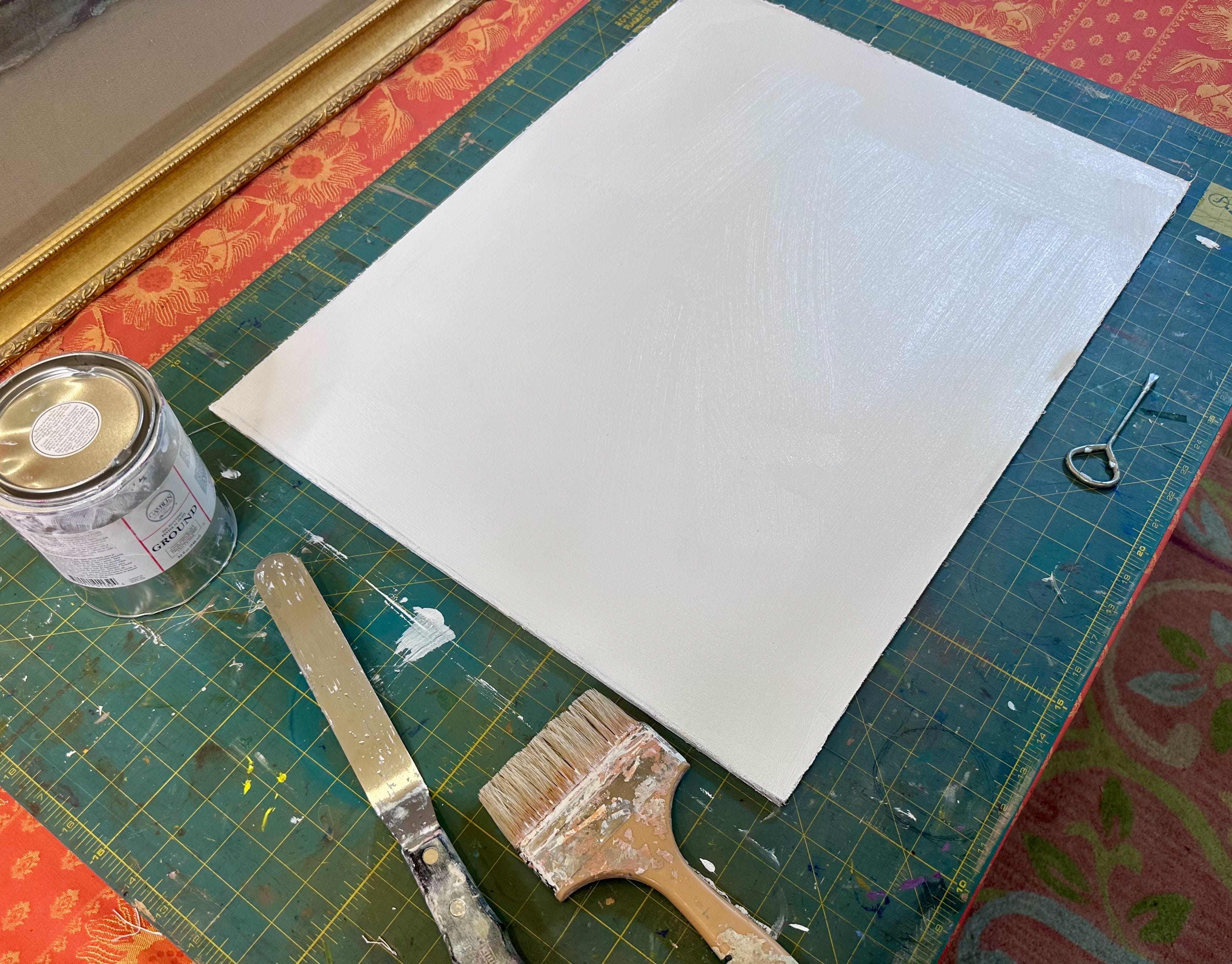 Step One: Cut a painting board to size. Masonite is pretty useful for this if it has been sealed first, and the painting is rather small. Beyond 12 x 16”, we prefer the stability of a birch painting board, which is made from several laminated plies and therefore won’t warp after the …