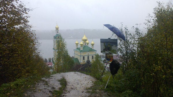 Marc Dalessio shares with us his tips on painting outdoors in difficult conditions. “Plein Air Painting in Rain” is reprinted here with permission from the artist. To see more of Dalessio’s work and musings please visit his website.