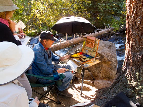 Losing a painting somewhere is never fun, but losing a good painting can drive one to temporary distraction. While teaching our plein air workshop in Rocky Mountain National Park, I was demonstrating the direct-painting method of painting outdoors. This method requires the painter to begin work without any preliminary monochromatic sketch, or much of any sketch at all. The subject was a mountain stream and the demonstration went well. I felt that this small study was complete enough to use as reference for a much larger piece. One of my students was interested in purchasing it. After the painting session was over, we packed up and I placed the painting against a tree with the rest of my gear. We broke for lunch, then loaded up our gear and headed for our afternoon painting location on the other side of the park. It wasn’t until 4:30 that afternoon that I noticed that the morning study was missing from my wet box. We rushed back to the morning location and searched everywhere, but no …