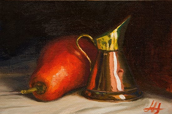 Whether you are a student just learning to paint or a professional, painting still life subjects is an indispensable, time-honored practice which helps artists to develop their ability to accurately represent the world and polish those skills they have already acquired. When bad weather forces plein air painters indoors, a properly constructed still life set up allows us to create our own table-top microcosm of objects, colors, textures and light. Therefore it is essential to create a still life table in our studios or work areas which can be lit properly and easily changed and adjusted to suit the subjects that we want to study. The good news is that you don’t have to spend a lot of money to build a very professional set up. This is a low-tech solution! The basic supplies that you’ll need are available at the hardware store or home center.