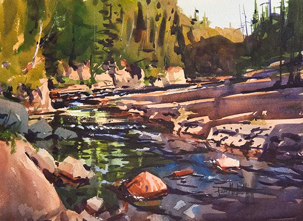 Devil’s Track River 12 x 16” Watercolor and Gouache