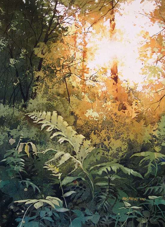 Kris Parins brings to her watercolor paintings bold colors and a strong sense of design. She credits her early college study in textile design and her career as a graphic artist in influencing her watercolor paintings today. Parins is a signature member of the American Watercolor Society, the National Watercolor Society and the Transparent Watercolor Society of America. She was invited to participate in the first World Watercolor Exposition Thailand hosted by the Office of Contemporary Art and Culture in Bangkok and the first International Watercolor Exhibition Canada held in Vancouver. She has received many awards and has been published in multiple arts publications. Parins maintains studios in northern Wisconsin and Sarasota, Florida.